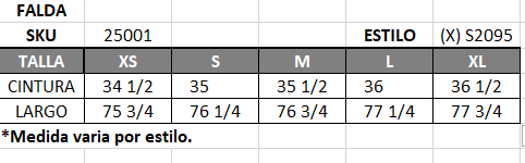 | Talla | S, M, L, 1X, 2X |