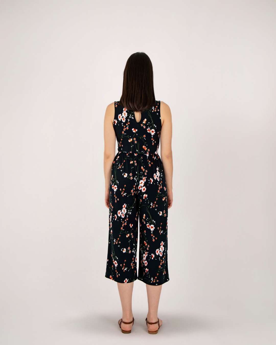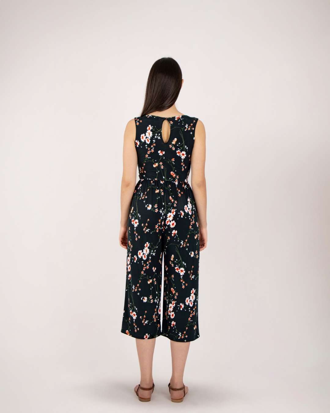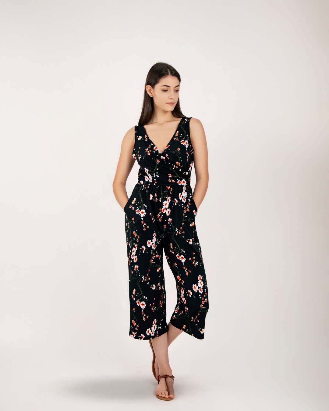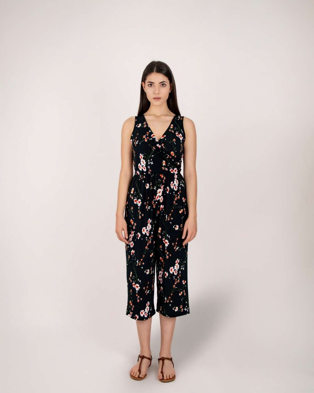 Jumper corto, mangas cortas estampado floral y cuello pico.