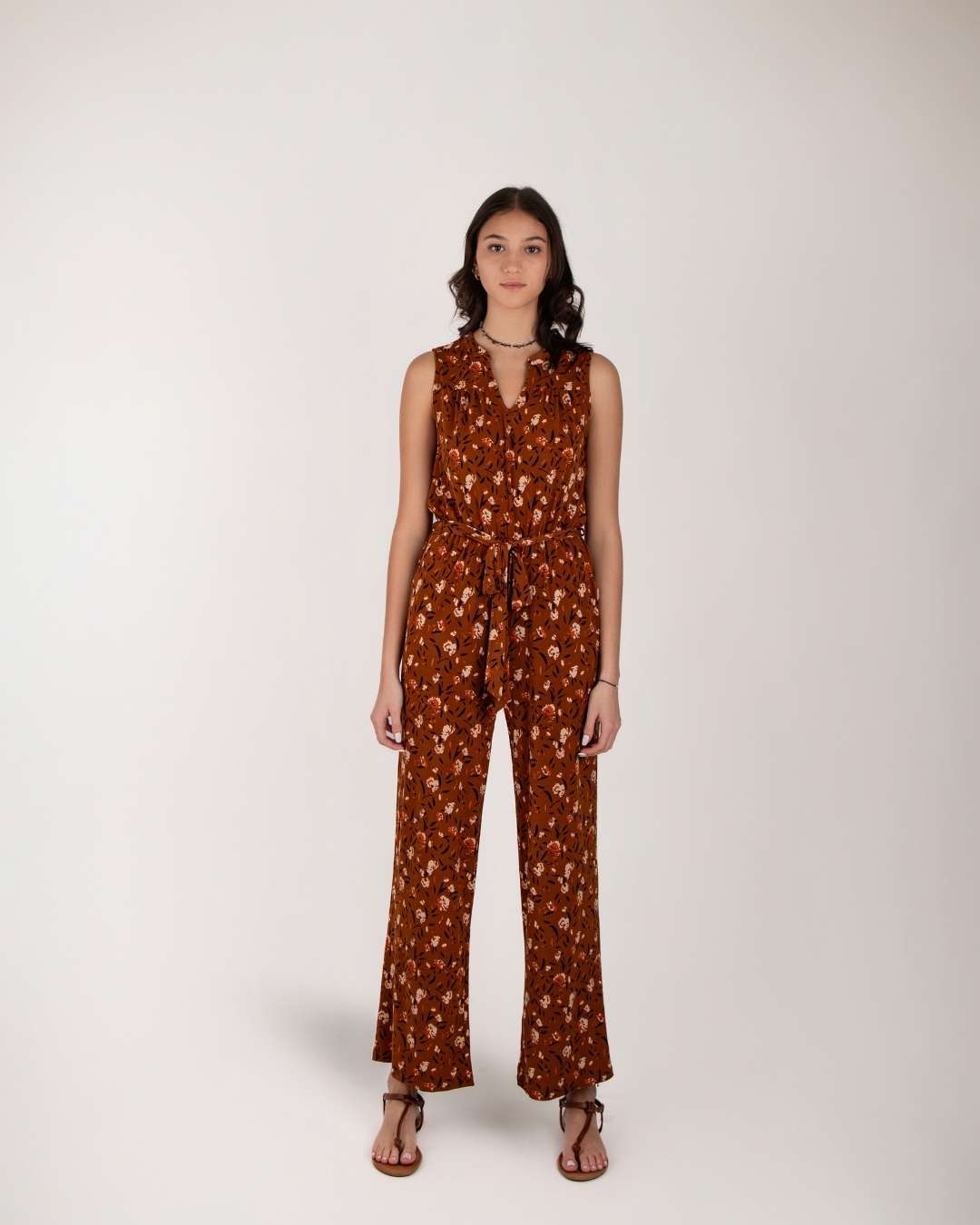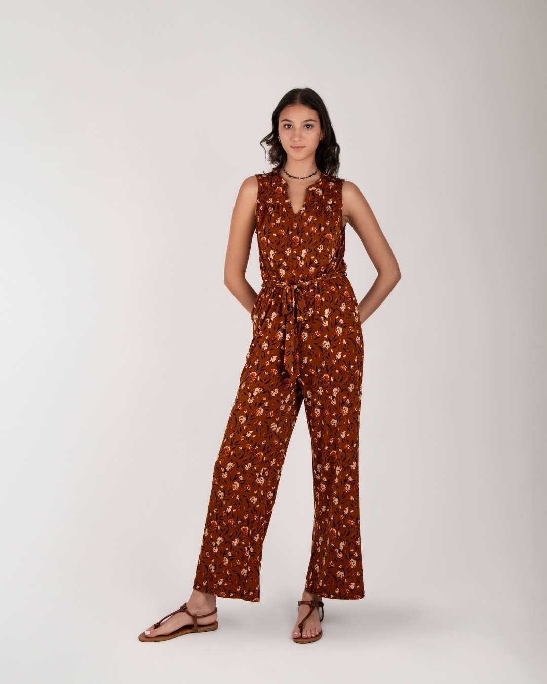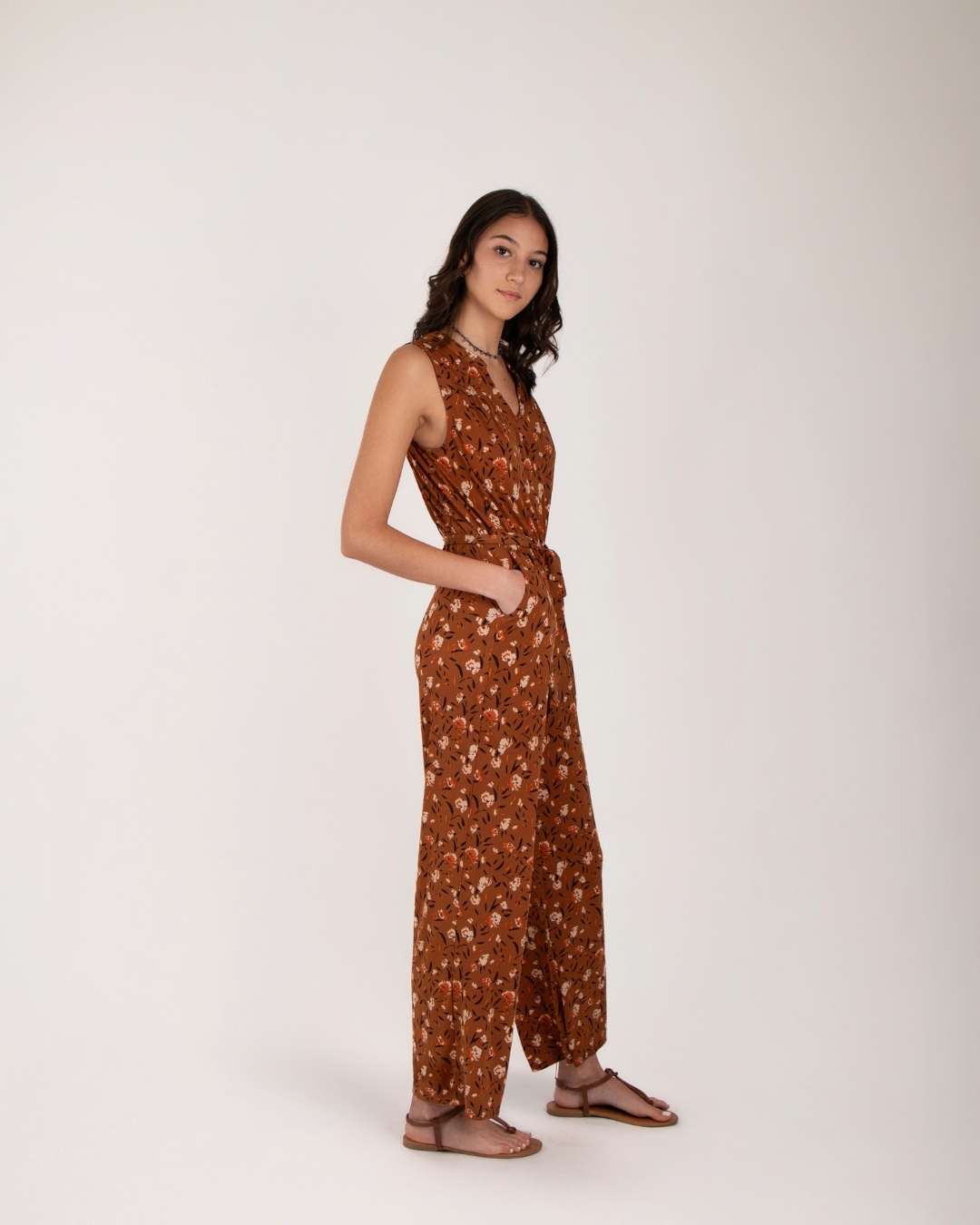 Jumper, cuello pico, manga corta, multicolores, estampado floral, detalle de nudo en la cintura.