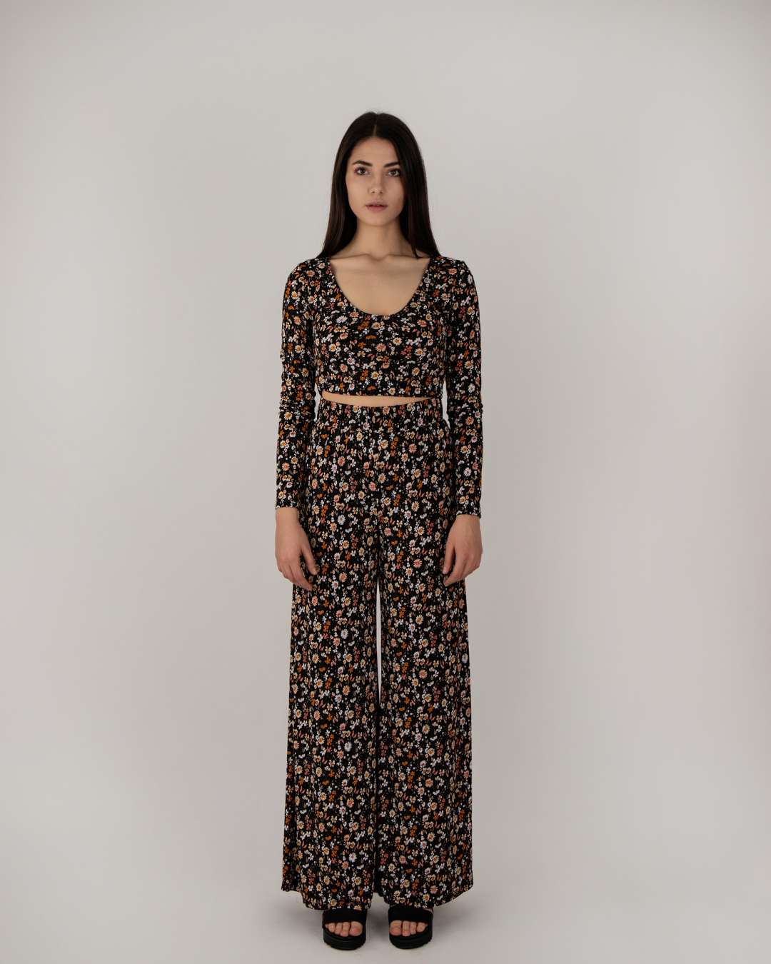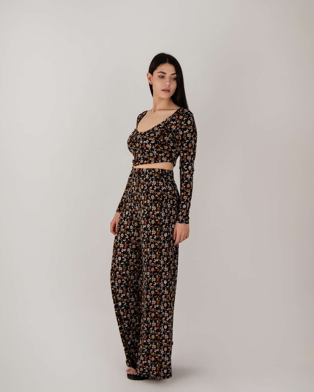 Pants, largo con estampado floral y elástico e n la cintura.