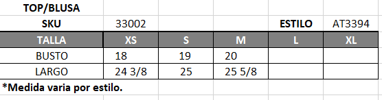 | Talla | S, M, L |