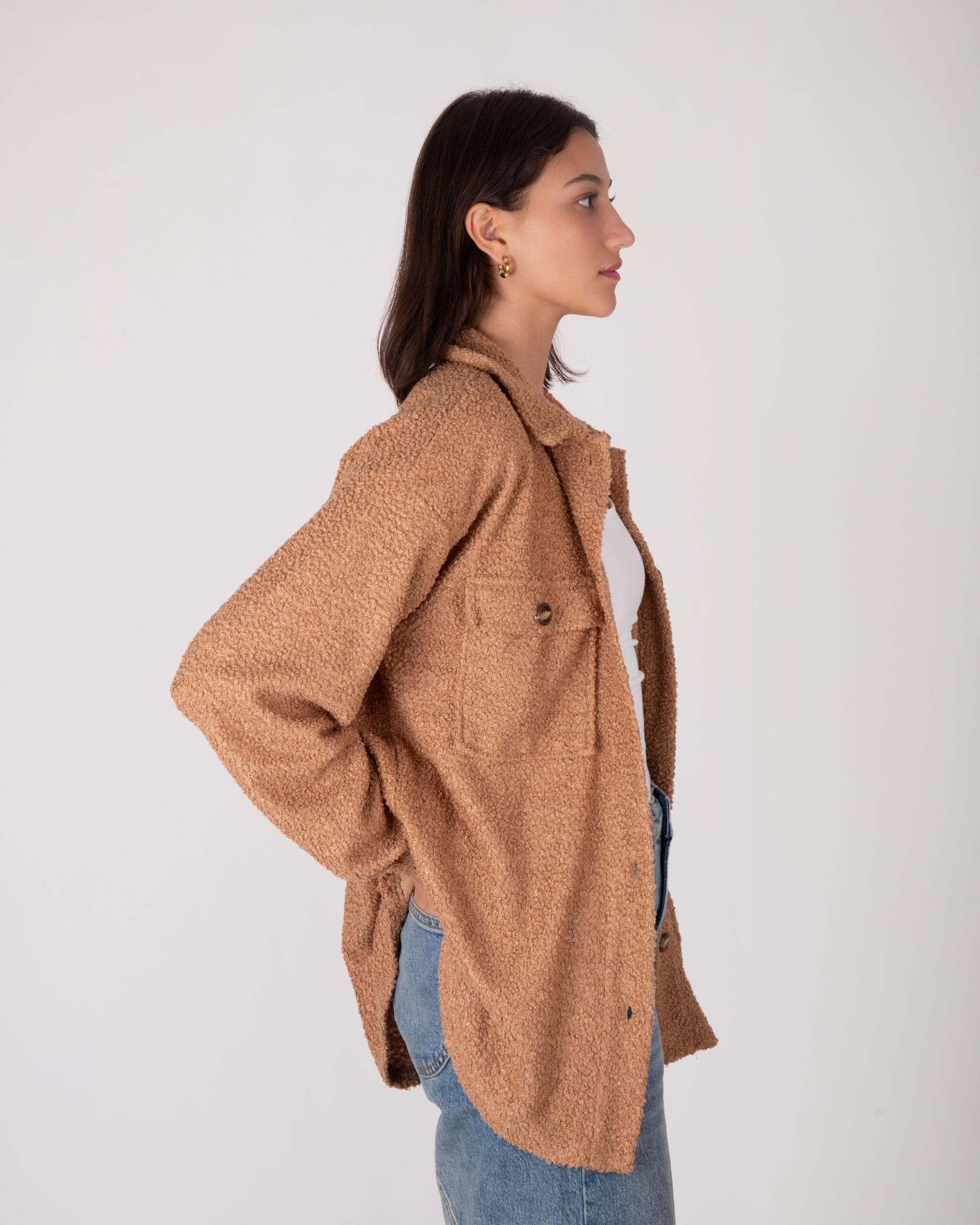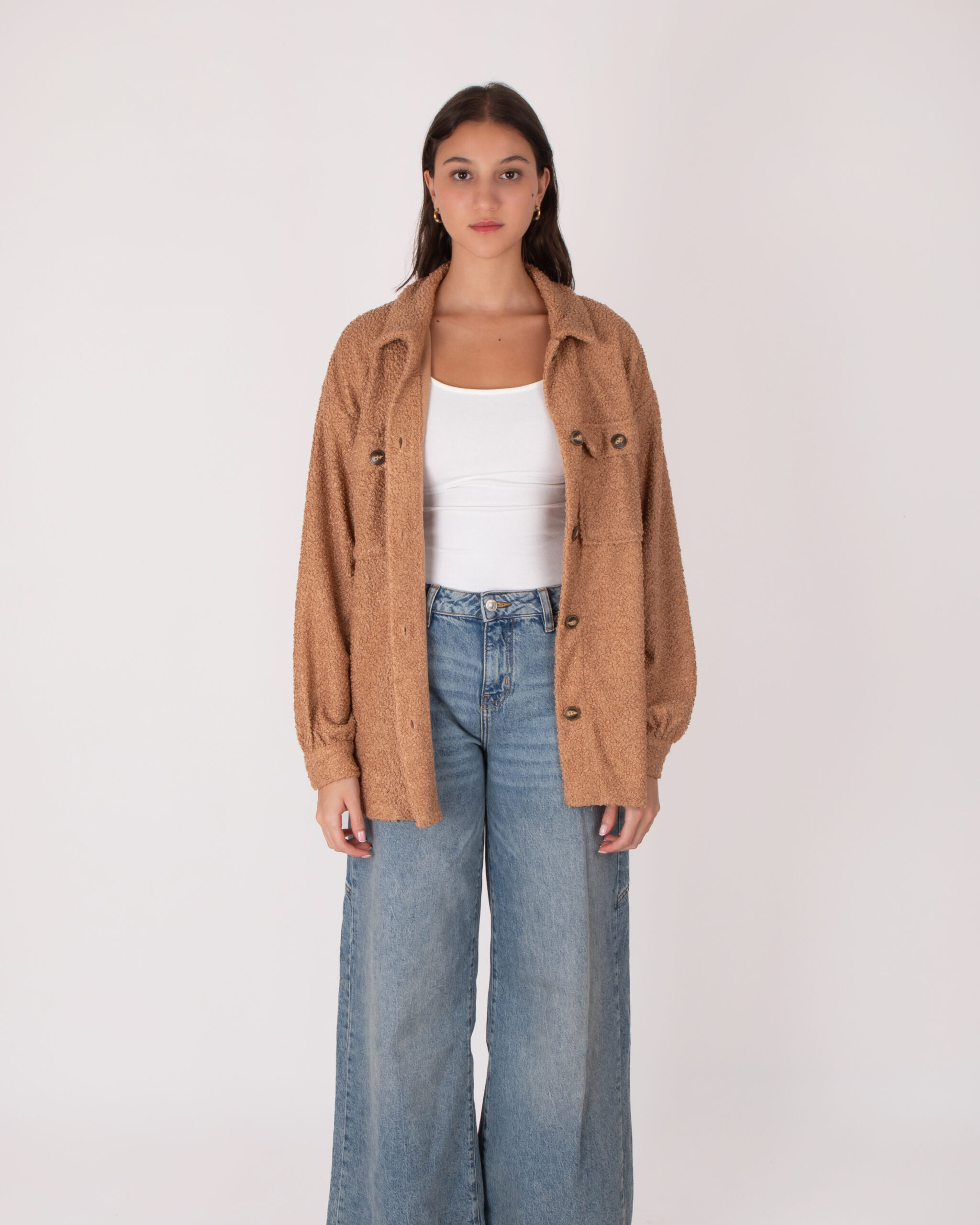 Top ovejero manga larga, con placket, botones en la parte de enfrnete y las mangas