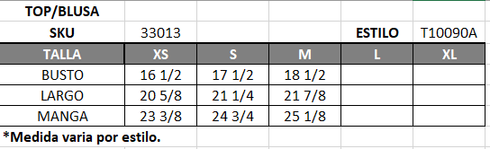 | Talla | S, M, L |
