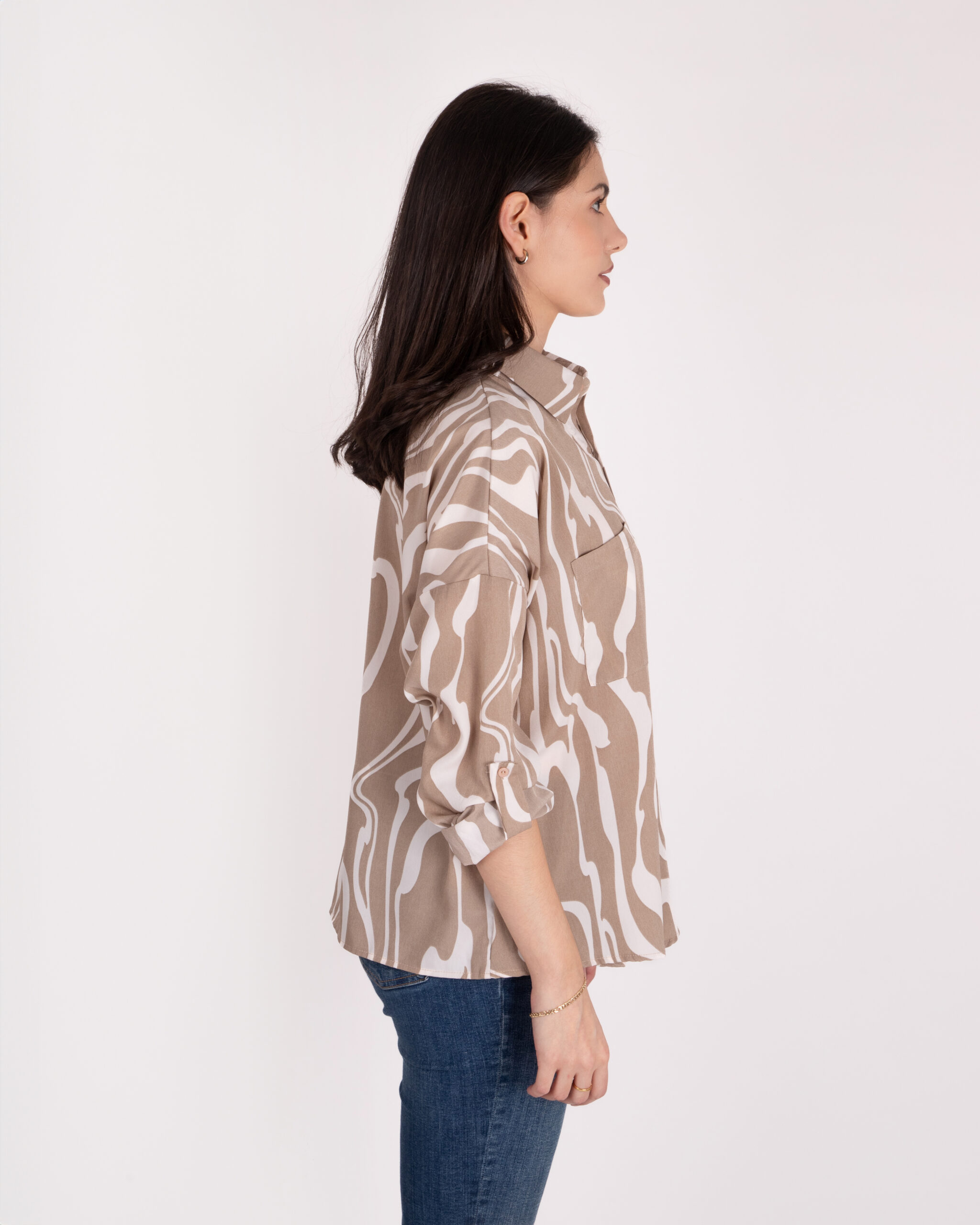 Top manga larga, placket, botones en la parte de enfrente y en las mangas
