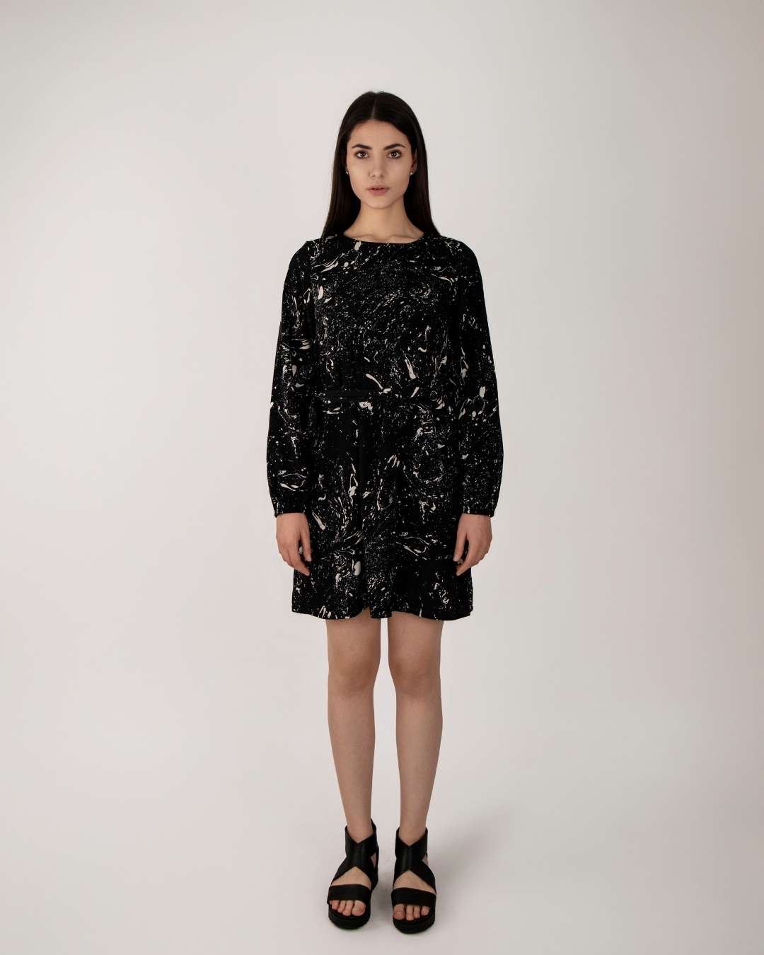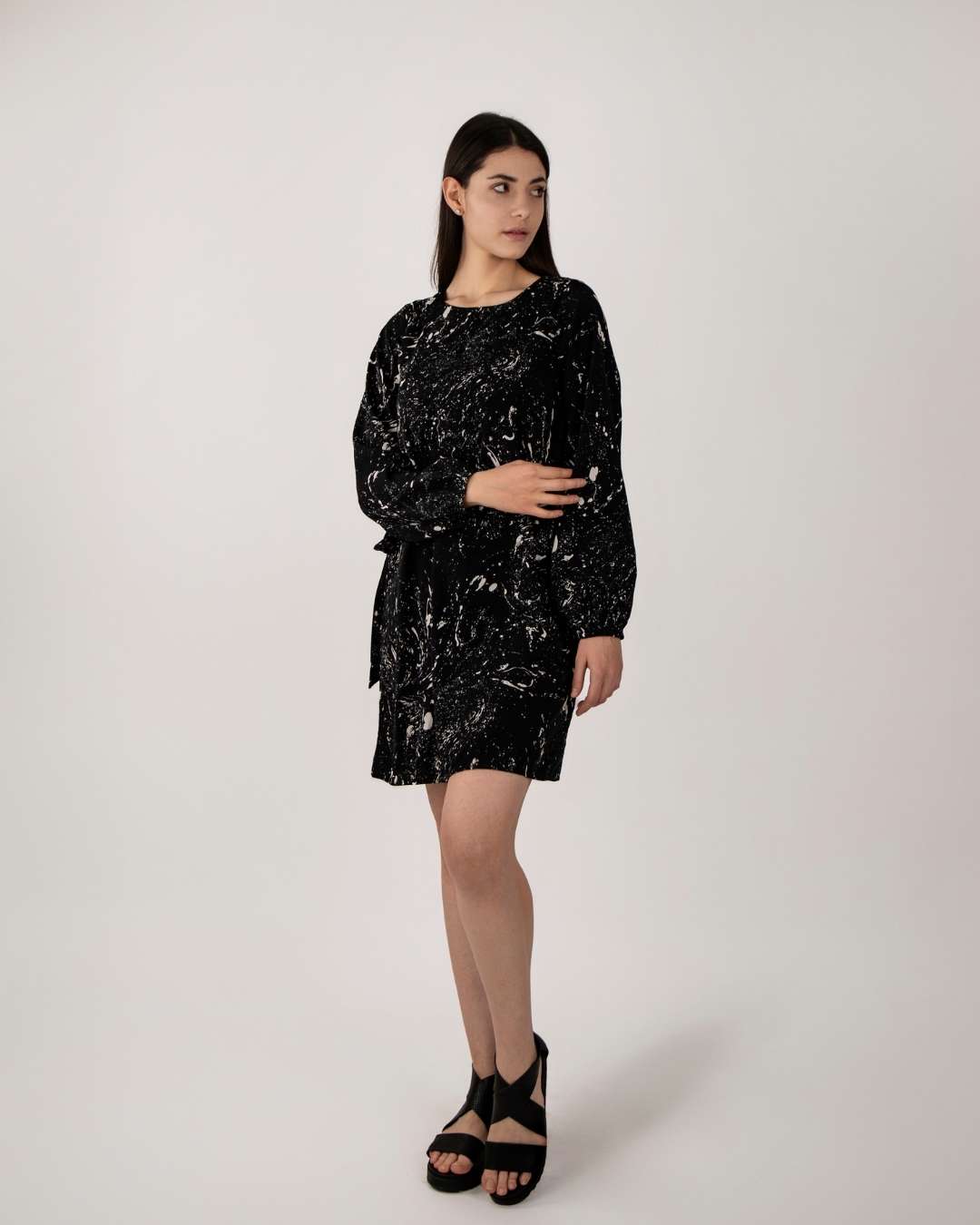 Vestido Corto, Color Neutro Abstracto, Manga Larga